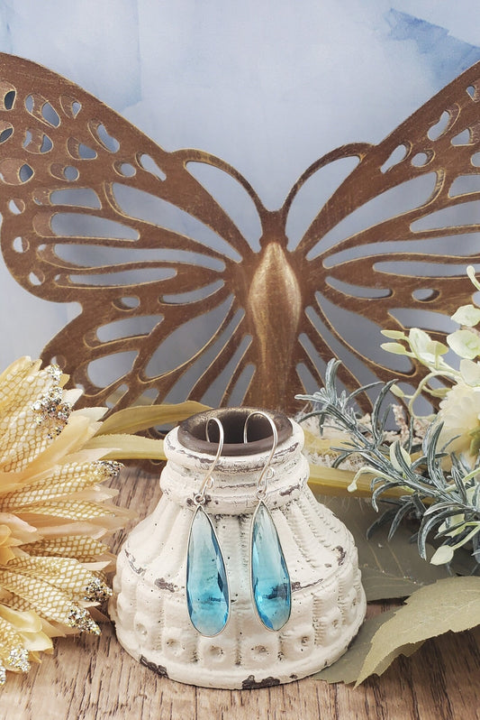Sky Blue Quartz 11x35 mm Earrings, Silver Filled Earring Wire
