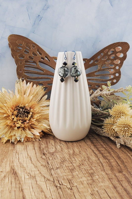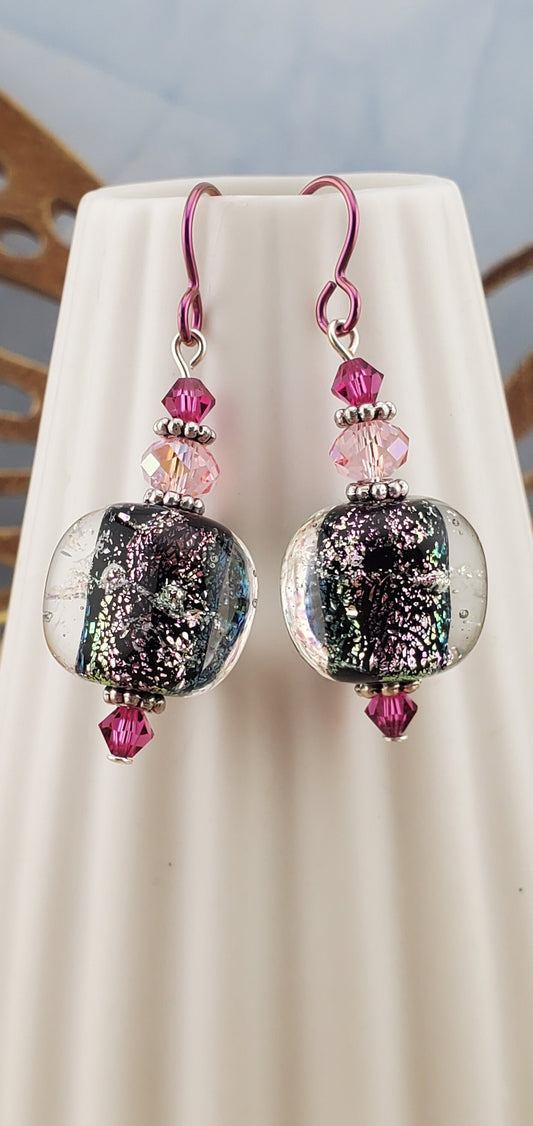 NI Mystical Wonders Artisan Glass Earrings, Lampwork Glass Bead by a talented artisan, Niobium Earring Wire
