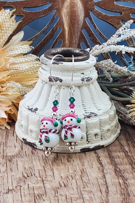 SS Frosty Elegance Artisan Glass Earrings, Sterling Silver Earring Wire