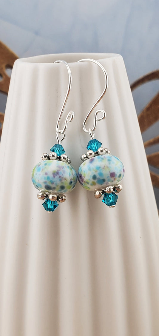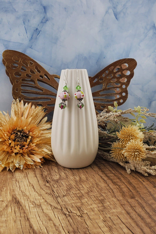 SF Garden Glory Artisan Glass Earrings, Lampwork Glass Bead by a talented artisan, Silver Filled Earring Wire