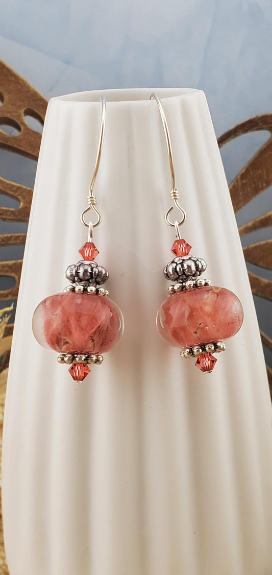 SS Coral Cloud Artisan Glass Earrings, Lampwork Glass Bead handcrafted by a talented artisan, Sterling Silver Earring Wire