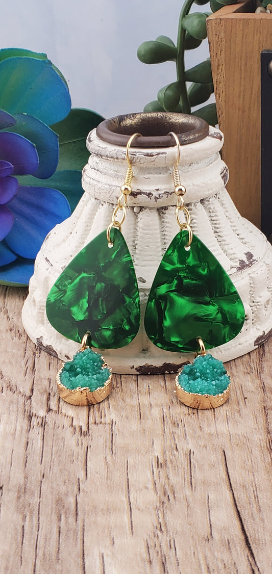 Geode Guitar Pick Earrings, Gold Plated Earring Wire