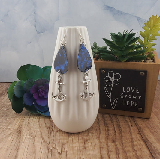 Nautical Guitar Pick Earrings, Stainless Steel Earring Wire