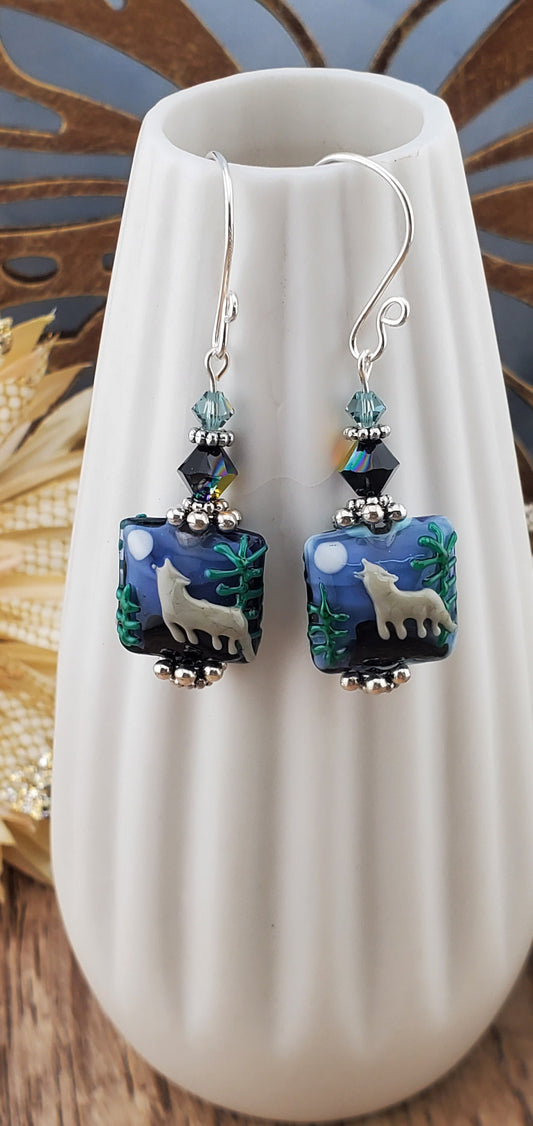 SF Twilight Serenade Artisan Glass Earrings, Lampwork Glass Bead handcrafted by a talented artisan, Silver Filled Earring Wire