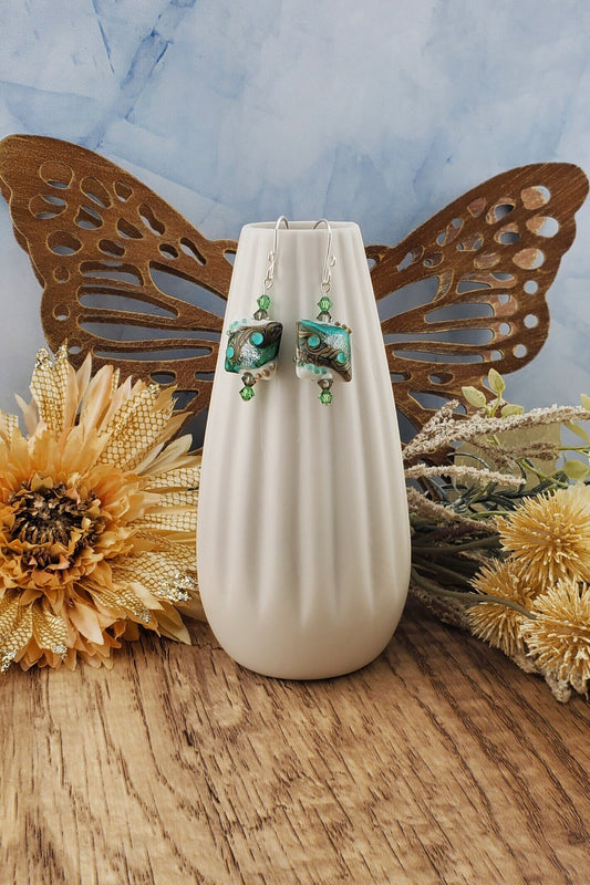 SF Coastal Breeze Artisan Glass Earrings, Lampwork Glass Bead handcrafted by a talented artisan, Silver Filled Earring Wire