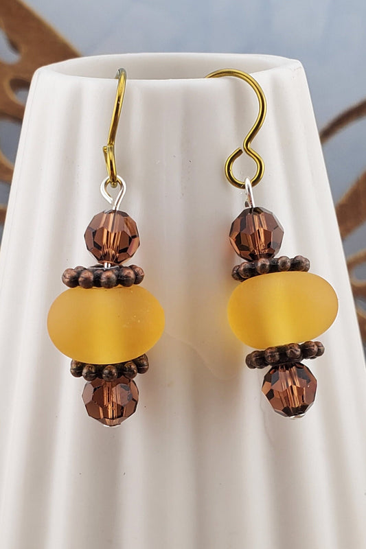 NI Amber Honey Artisan Glass Earrings, Lampwork Glass Bead by a talented artisan, Niobium Earring Wire
