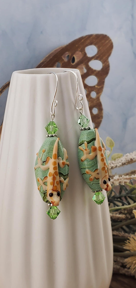 SF Gecko Glamour Artisan Glass Earrings, Silver Filled Earring Wire