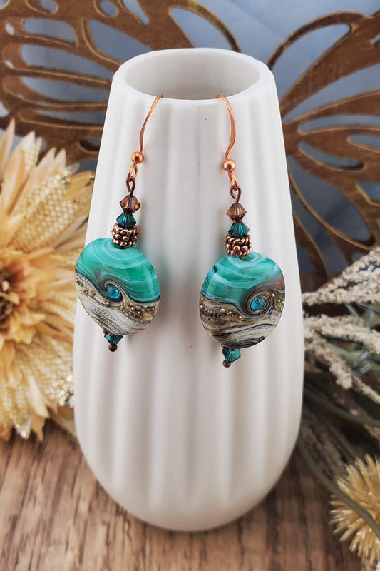 CP Seaside Serenade Artisan Glass Earrings, Copper Earring Wire