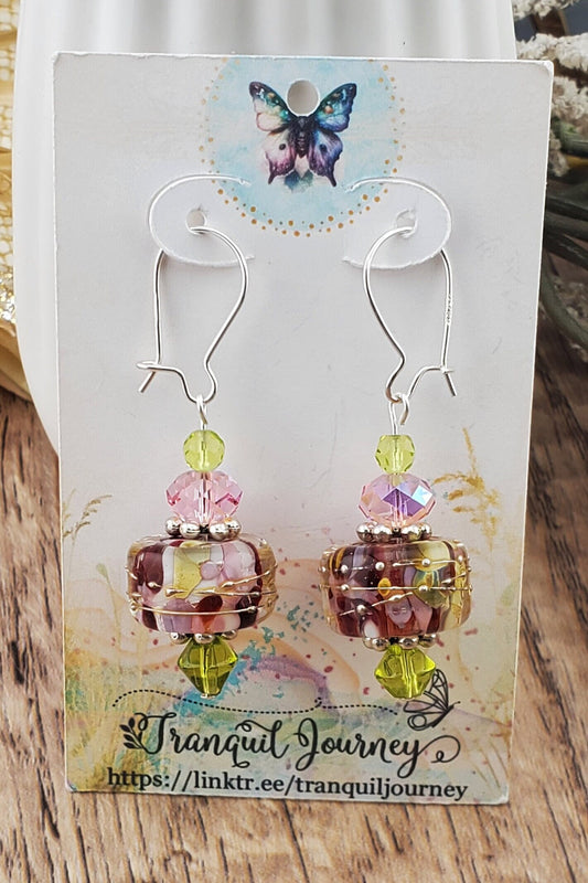 SF Springtime Whispers Artisan Glass Earrings, Lampwork Glass Bead handcrafted by a talented artisan, Silver Filled Earring Wire