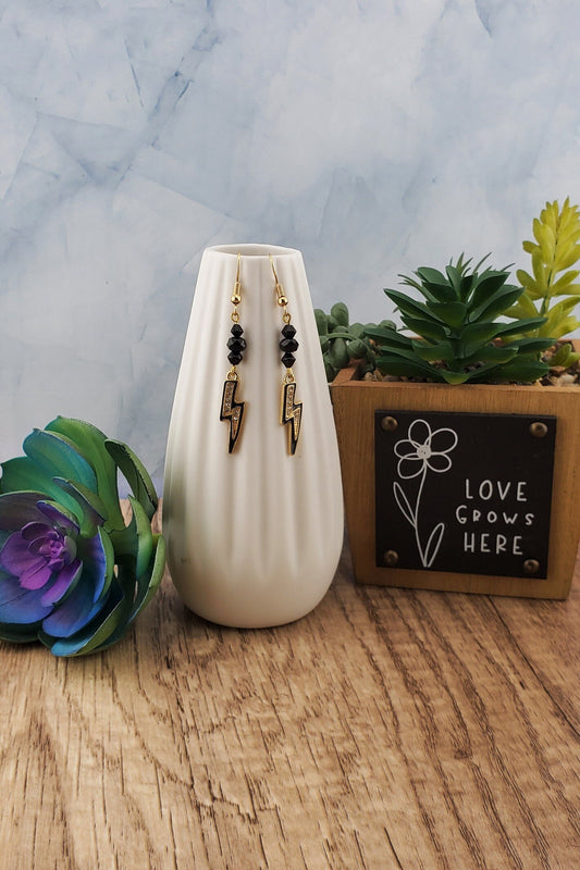 GP Black Lightning Earrings, Gold Plated Earring Wire