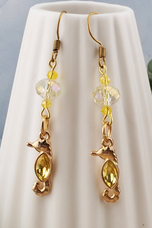 CP Yellow Seahorse Earrings, Copper Earring Wire