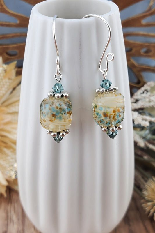 SF Sandy Shores Artisan Glass Earrings, Lampwork Glass Bead handcrafted by a talented artisan, Silver Filled Earring Wire