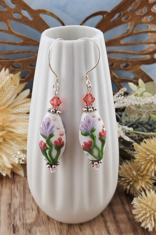 SF Love Blooms Artisan Glass Earrings, Silver Filled Earring Wire