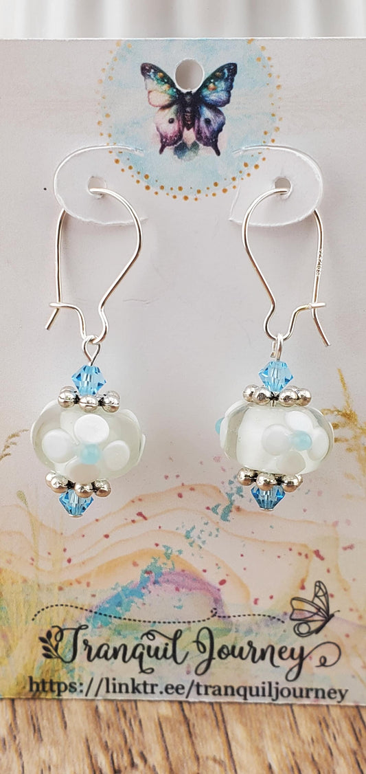 SF Baby Blue Blossoms. Artisan Glass Earrings, Lampwork Glass Bead handcrafted by a talented artisan, Silver Filled Earring Wire
