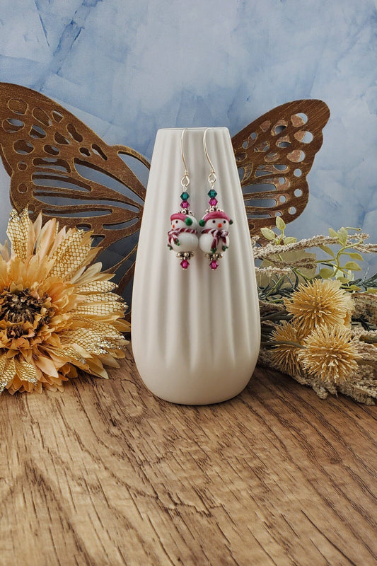 SS Blushing Snow Buddy Artisan Glass Earrings, Sterling Silver Earring Wire