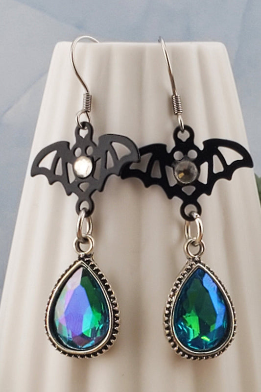 Jeweled Bat Earrings, Stainless Steel Earring Wire