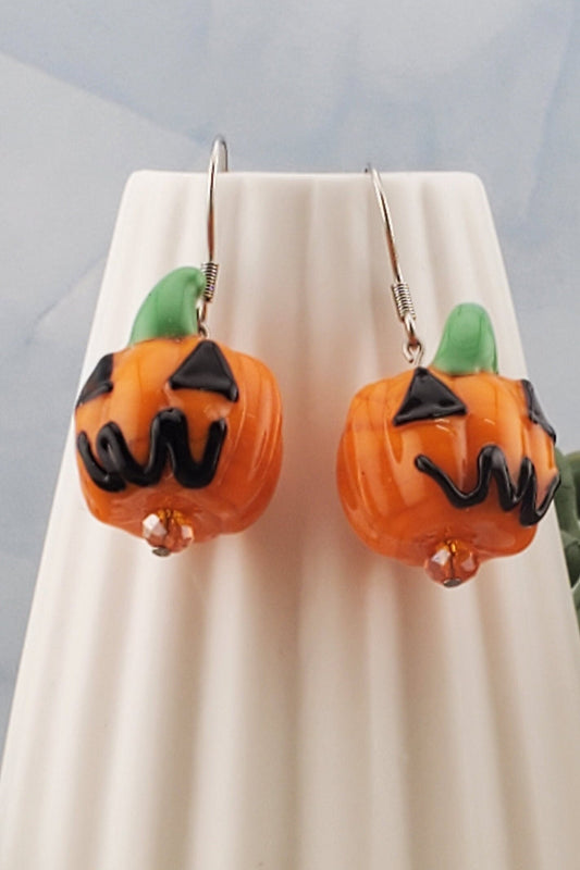 Pumpkin Glass Earrings, Stainless Steel Earring Wire