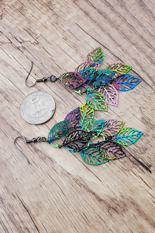 GM Rainbow Leaves Earrings, Gun Metal Earring Wire