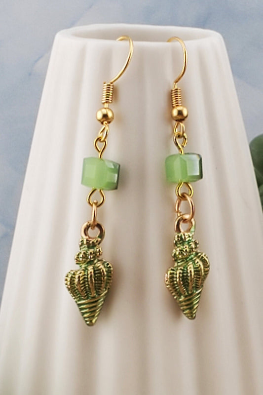 GP Green Seashell Earrings, Gold Plated Earring Wire