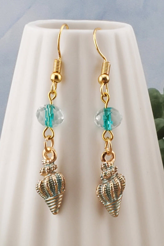 Blue Seashell Earrings, Gold Plated Earring Wire