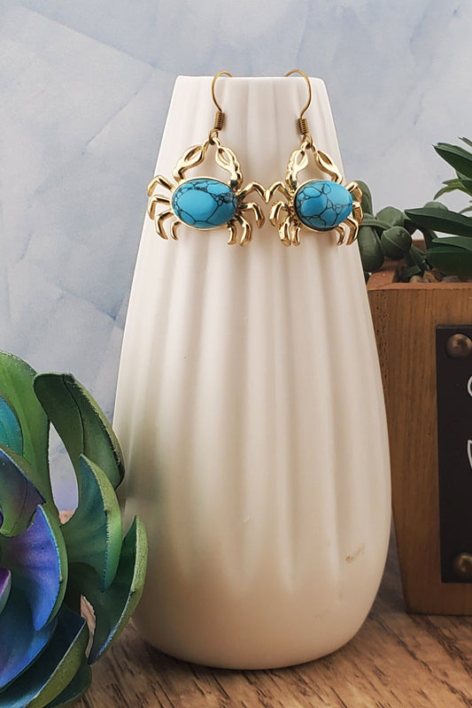 CP Turquoise Crab Earrings, Copper Earring Wire