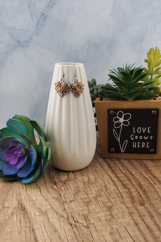 ST Floral Heart Earrings, Stainless Steel Earring Wire