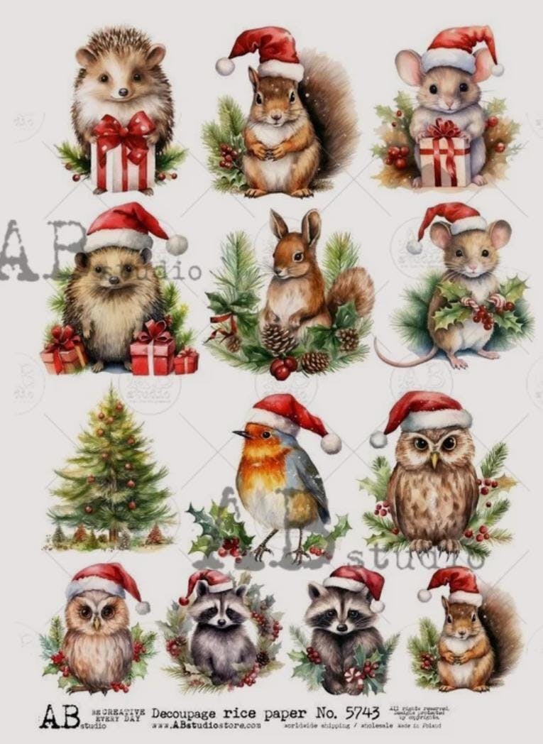 A4 AB Studios Christmas Wild animals Rice Paper