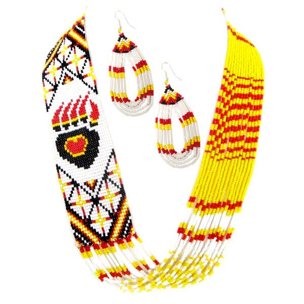 Handmade Beaded Yellow Bear Paw Layered Necklace Earrings Set