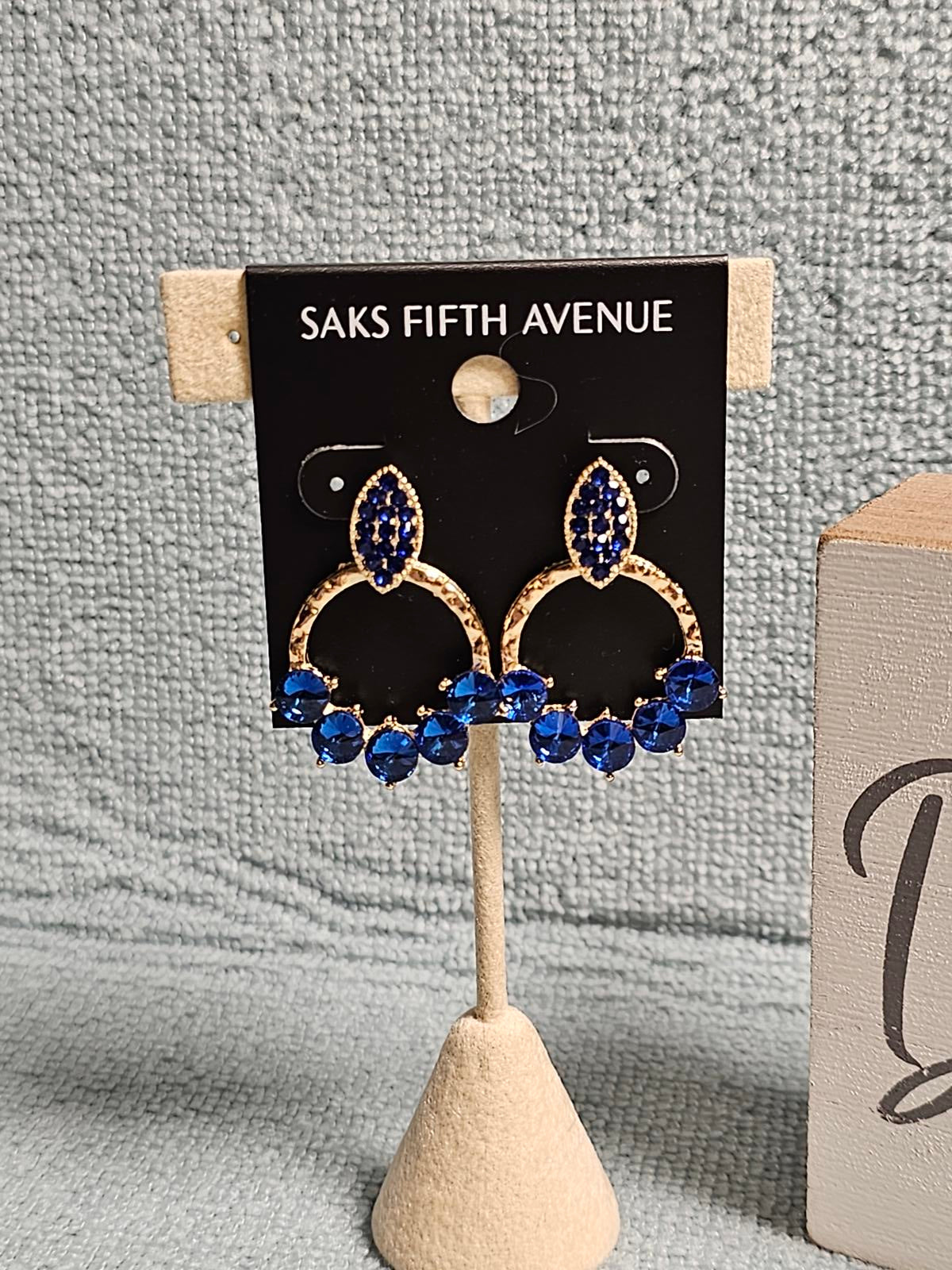 Elegant Blue Gemstone Hoop Earrings by Saks Fifth Avenue