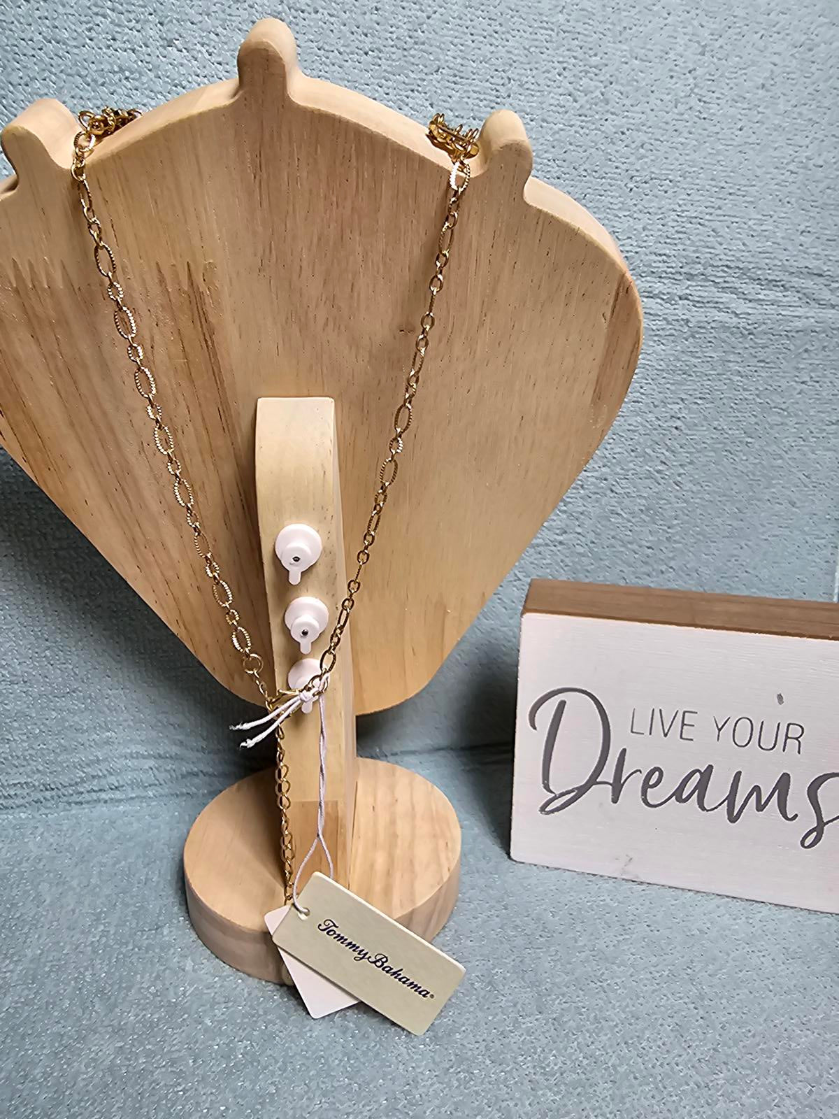 Elegant Tommy Bahama Layered Pearl & Gold Necklace