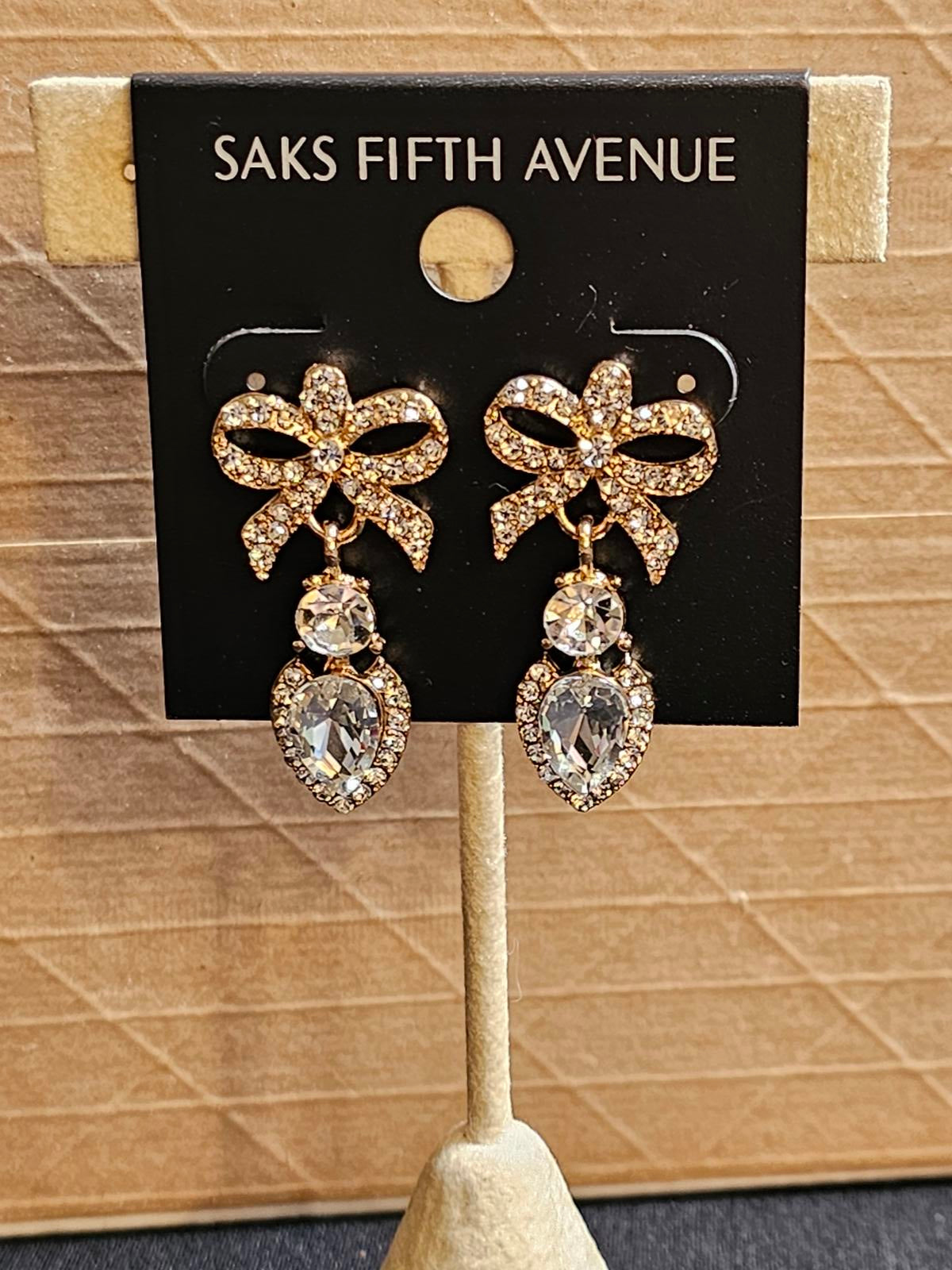 Saks Fifth Avenue Elegant Bow Earrings with Crystals