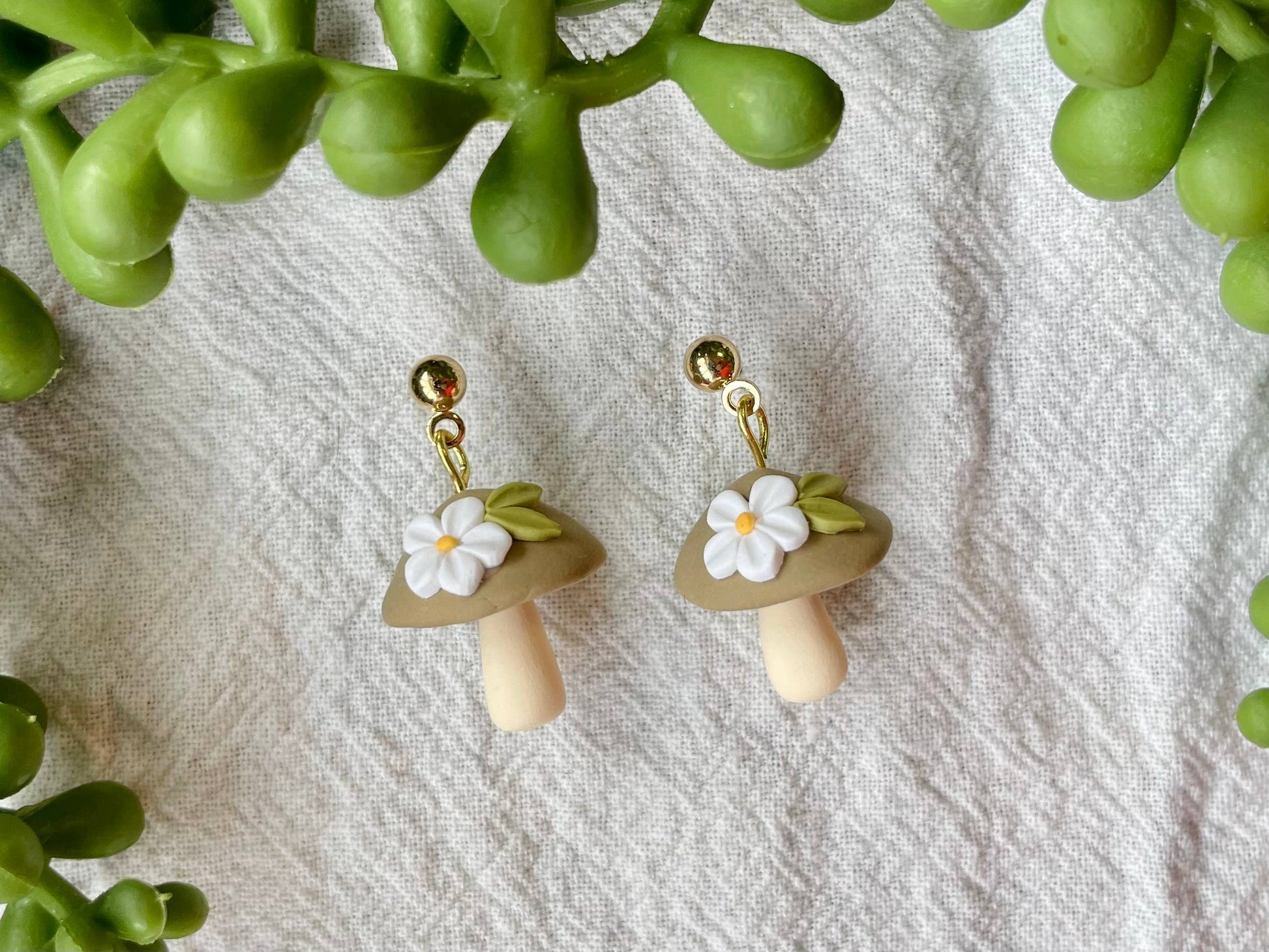 Floral mushroom clay dangle earrings