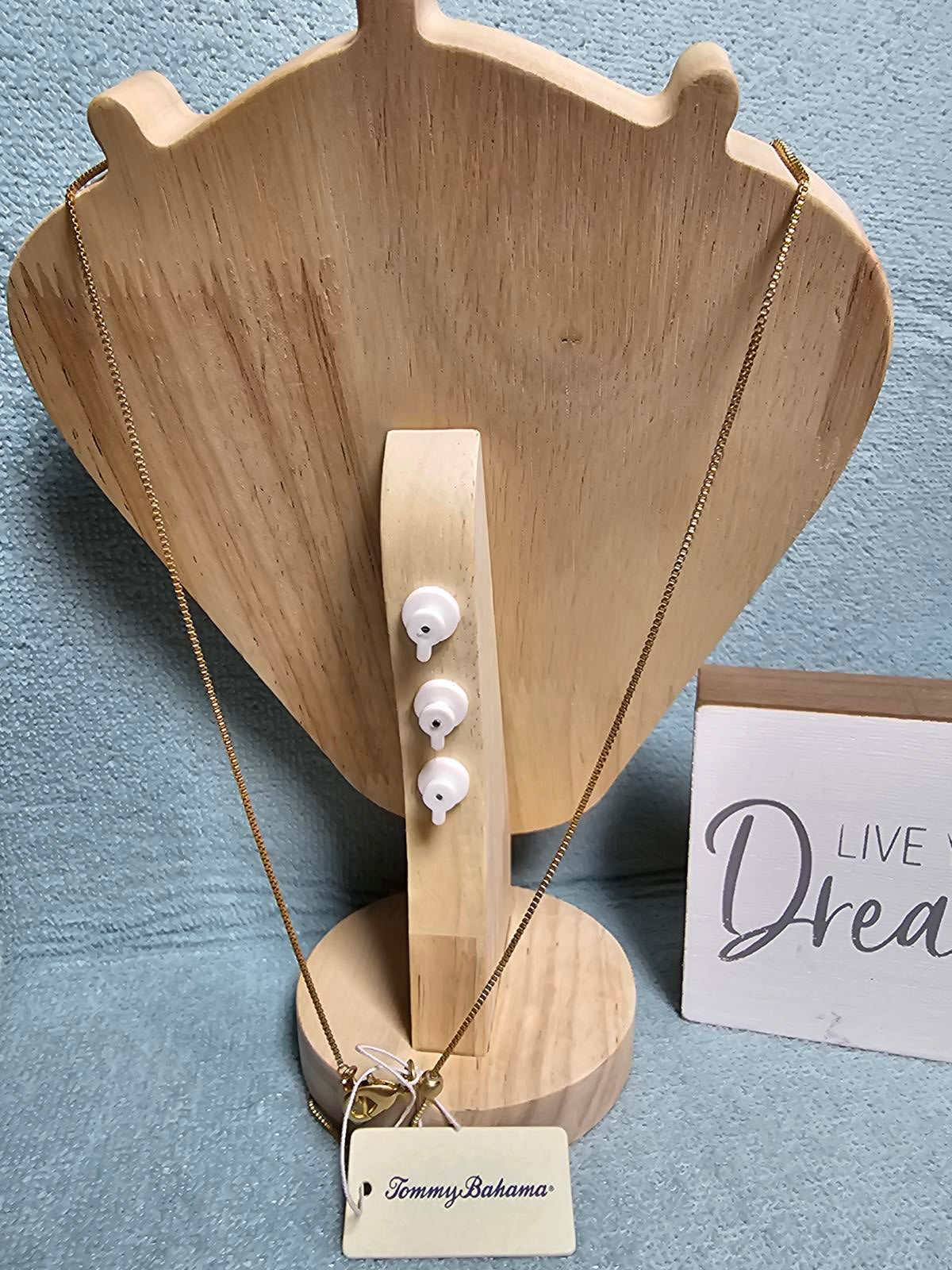 Elevate your jewelry collection with this exquisite Tommy Bahama gold pendant necklace. This stunning piece features a circular pendant adorned with a beautiful turquoise border, perfectly complementing the intricate design in the center. The delicate gold-tone chain makes it suitable for any occasion. Whether dressed up for a night out or worn casually, this necklace adds a touch of elegance. - Brand: Tommy Bahama - Material: Metal with gold-tone finish - Pendant Diameter: Approximately 1 inch - Chain Length: Adjustable for the perfect fit - Vibrant turquoise accents enhance visual appeal